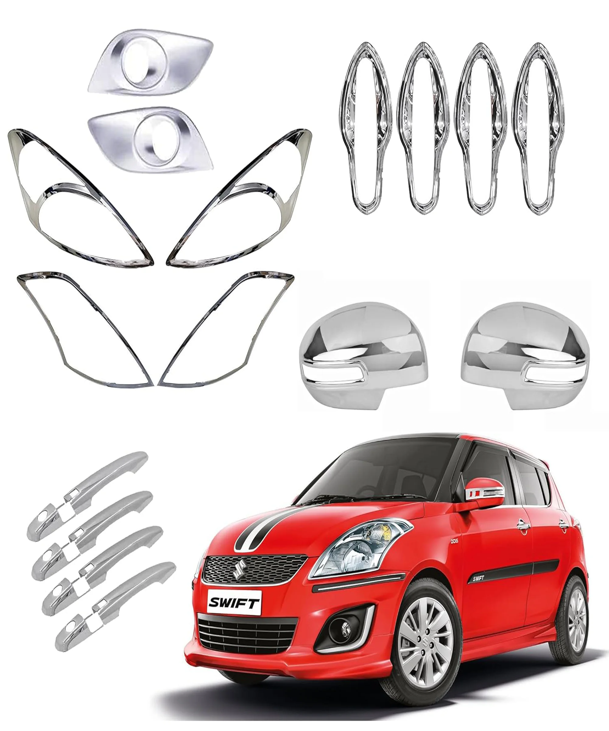 Expo Chrome Kit for Swift 2015 Model | Exterior Car Accessories | Stylish Protective Accessories (Set of 16 Pcs., Chrome Kit)