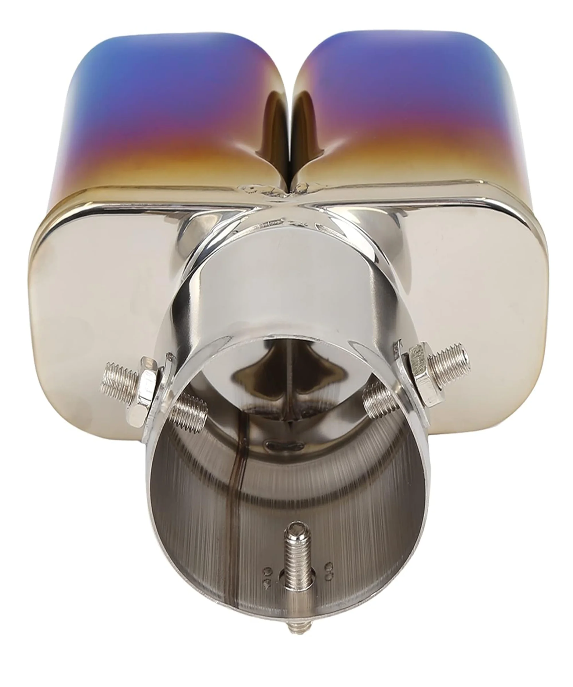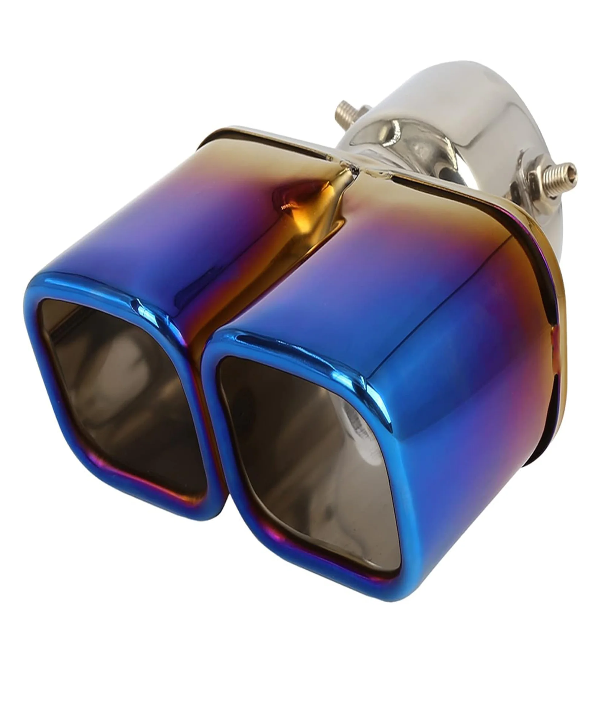 Stainless Steel Burnt Blue Holographic Blue Square Shaped Dual Pipe Car Exhaust Tail Muffler Tip Car End Pipe Tail Exhaust Show Pipe Universal for All Cars (Square Dual Pipe Straight) by MS Auto