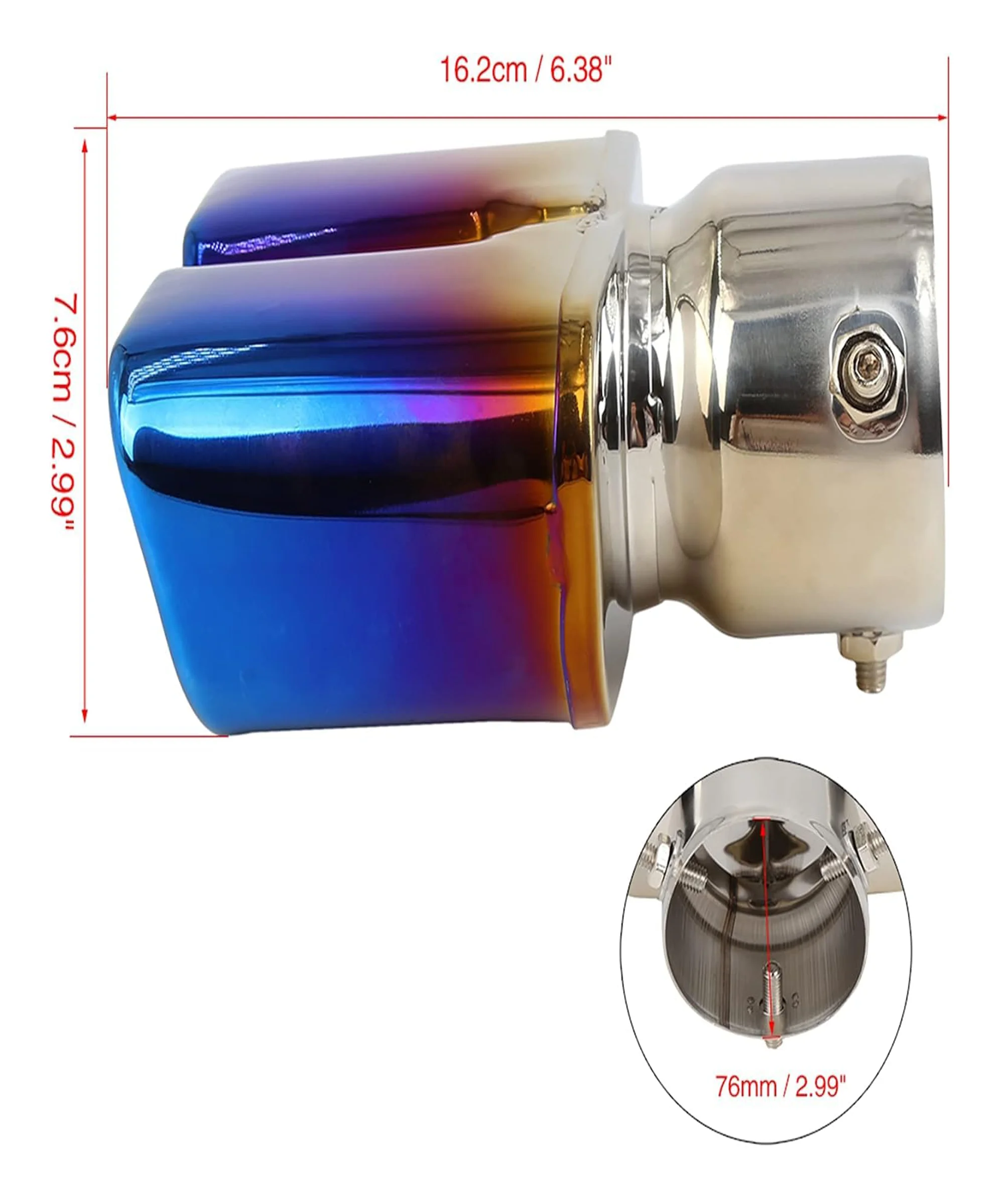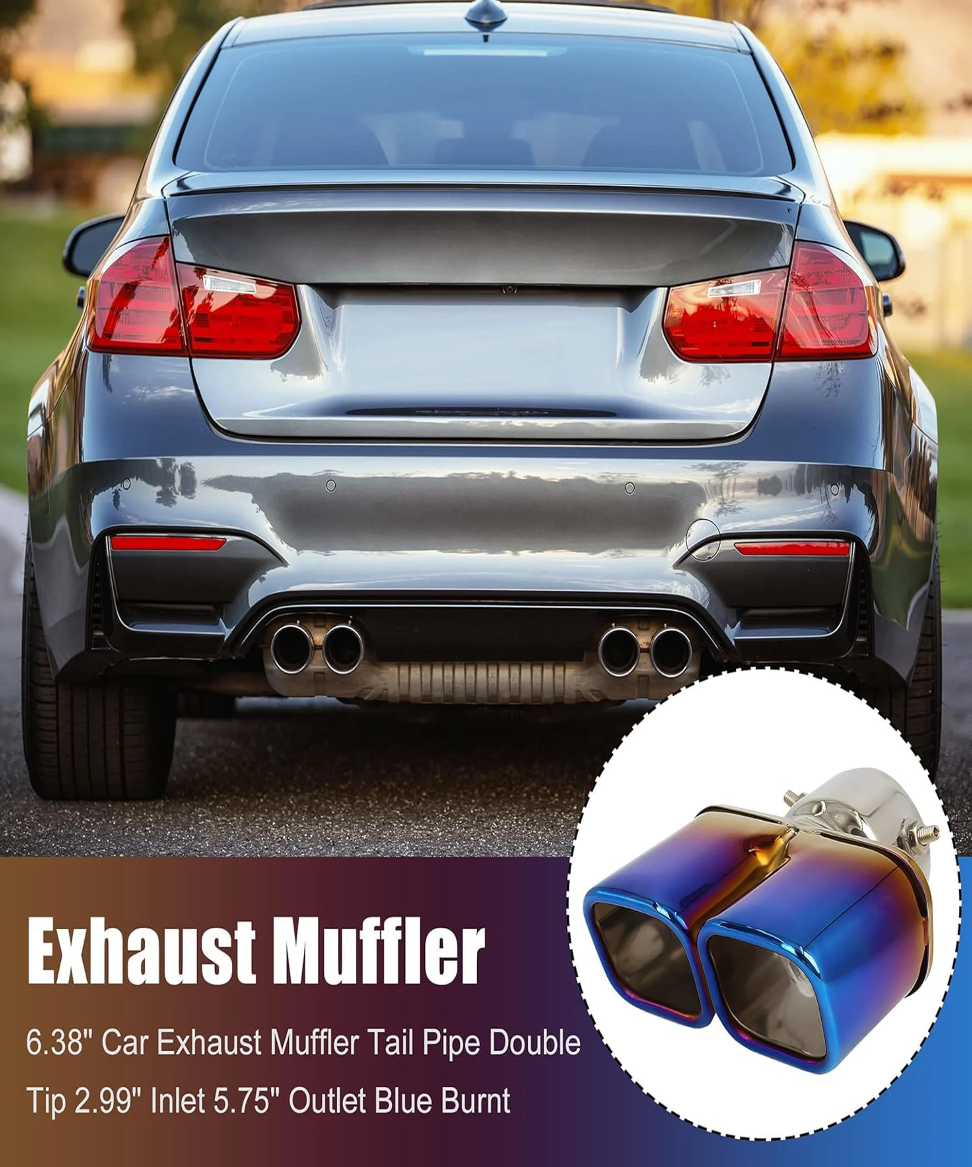 Stainless Steel Burnt Blue Holographic Blue Square Shaped Dual Pipe Car Exhaust Tail Muffler Silencer Tip Car End Pipe Tail Exhaust Show Pipe Universal for All Cars